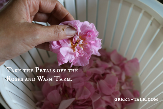 I collect my roses before 11 am in the morning. If you don’t own fragrant roses, you can buy them HERE. Please don’t use roses from a florist unless you know the roses aren’t sprayed with pesticides or other chemicals.