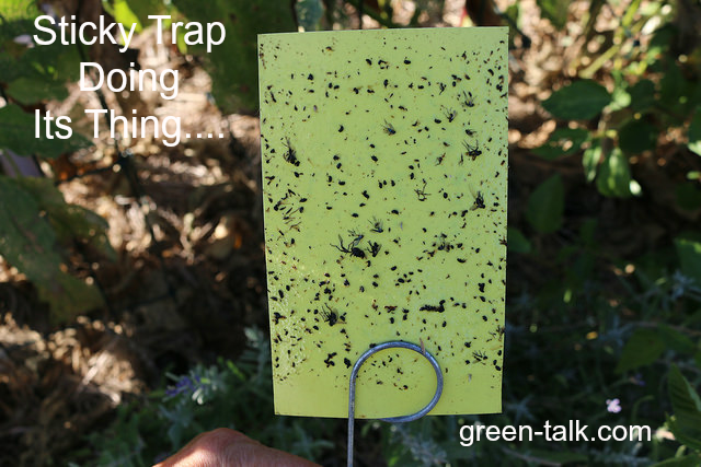 However, you can buy sticky traps HERE or make your own using plastic school folders. Watch the video below. (If you buy them at a store, make sure they are weatherproof. Some traps are for indoor use only.)
