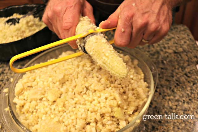 If you have a lot more corn than me you might want to consider buying this gadget. You can buy the Kleen Kutter Corn Cutter HERE .