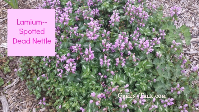 This plant spreads on the ground. It is also referred to as spotted dead nettle. It blooms twice in a season if you deadhead its blooms. If you are looking for a ground cover for a sunny area, lamium is a great choice.