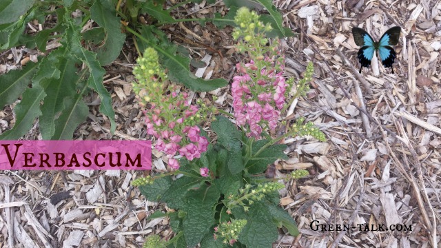I have several different colored verbascums in the garden. Their blooms are purple or pink and are similar to a fox glove’s blooms. You can deadhead them and they will re-bloom.